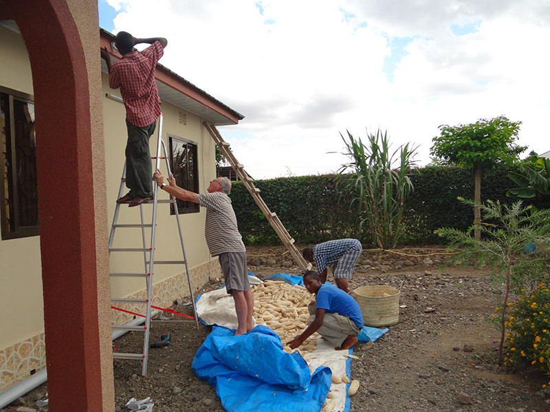En Tanzanie la saison des pluies est de Mars a Juin mais 95% des habitations n’ont pas de gouttieres. L’eau si precieuse est gaspillee, se deversant dans les chemins et routes en terre, devant et derriere les habitations, transformant tout en un immense bain de boue.
